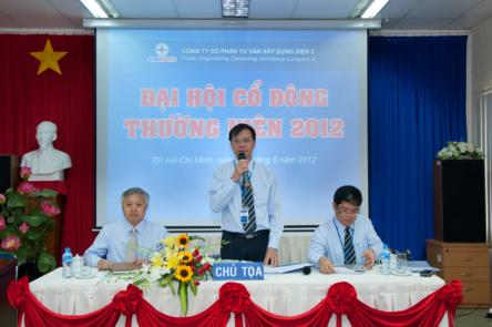 Годовое собрание акционеров в 2012 году Консультативной компании по электроэнергетическому строительству 2 (PECC2) состоилось 28.06.2012 в актовом зале компании по адресу 32 Нго Тхой Ньйем, квартал 7, Район 3 , города Хо Ши Мин. В собрании присутствовали 57 акционеров и уполномоченные представители от 3714848 акций, что составляет 84,46% голосующих акций Общества.