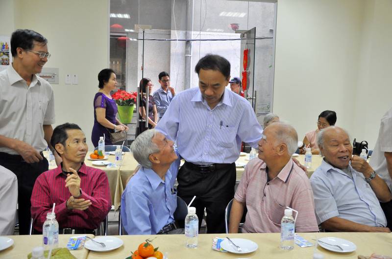 Phó TGĐ kiêm Chủ tịch CĐ TV2 Trần Quang Lâm chào hỏi và chúc tết các bác hưu trí