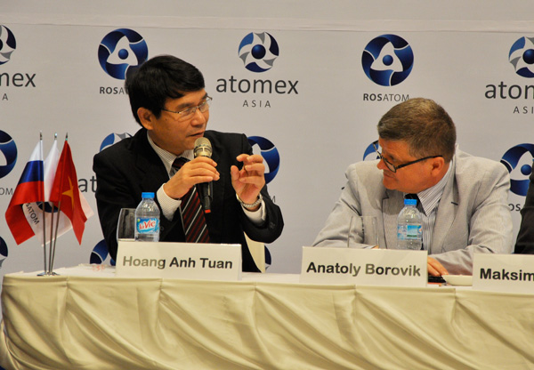 TS. Hoàng Anh Tuấn (Cục trưởng Cục Năng lượng Nguyên tử Việt Nam (VAEA) và ông Anatoly Borovik (Trưởng Lãnh sự quán Nga tại Hồ Chí Minh) cùng đặt câu hỏi với hội thảo