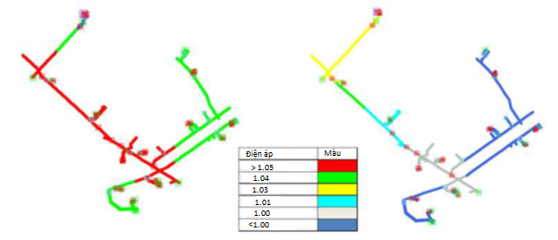 Hình 4: Điện áp của một lưới phân phối US (13) trong hai trường hợp: