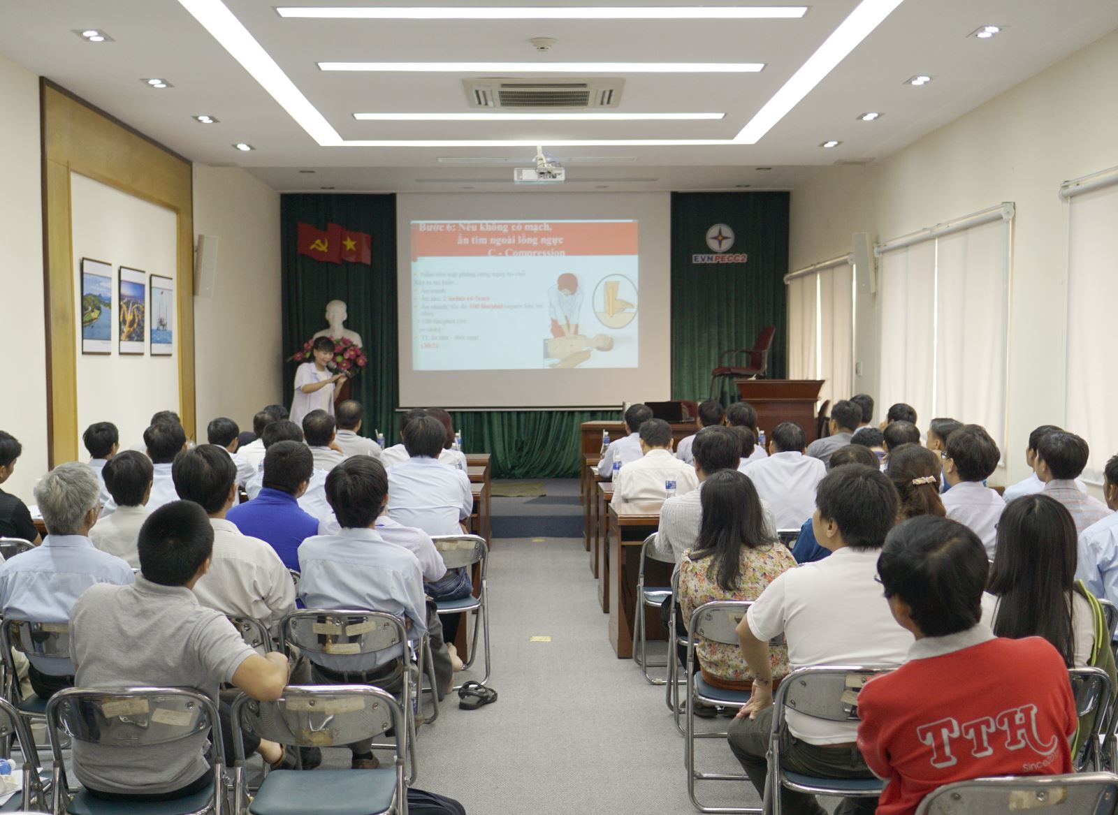 Qua đợt tập huấn, NLĐ TV2 đã được nghiên cứu 10 nội dung lý thuyết và được thực hành cơ bản về kỹ năng sơ cấp cứu ban đầu như: Bảo vệ nạn nhân và gọi cấp cứu, phương pháp cầm máu; khắc phục, lấy dị vật bị tắc trong đường thở; hô hấp nhân tạo trong trường hợp người bị bất tỉnh; băng bó, cố định khi nạn nhân bị gãy xương; điện giật; phòng tránh tai nạn đuối nước, bỏng, động vật cắn, đốt, vận chuyển an toàn nạn nhân đến các cơ sở Y tế...