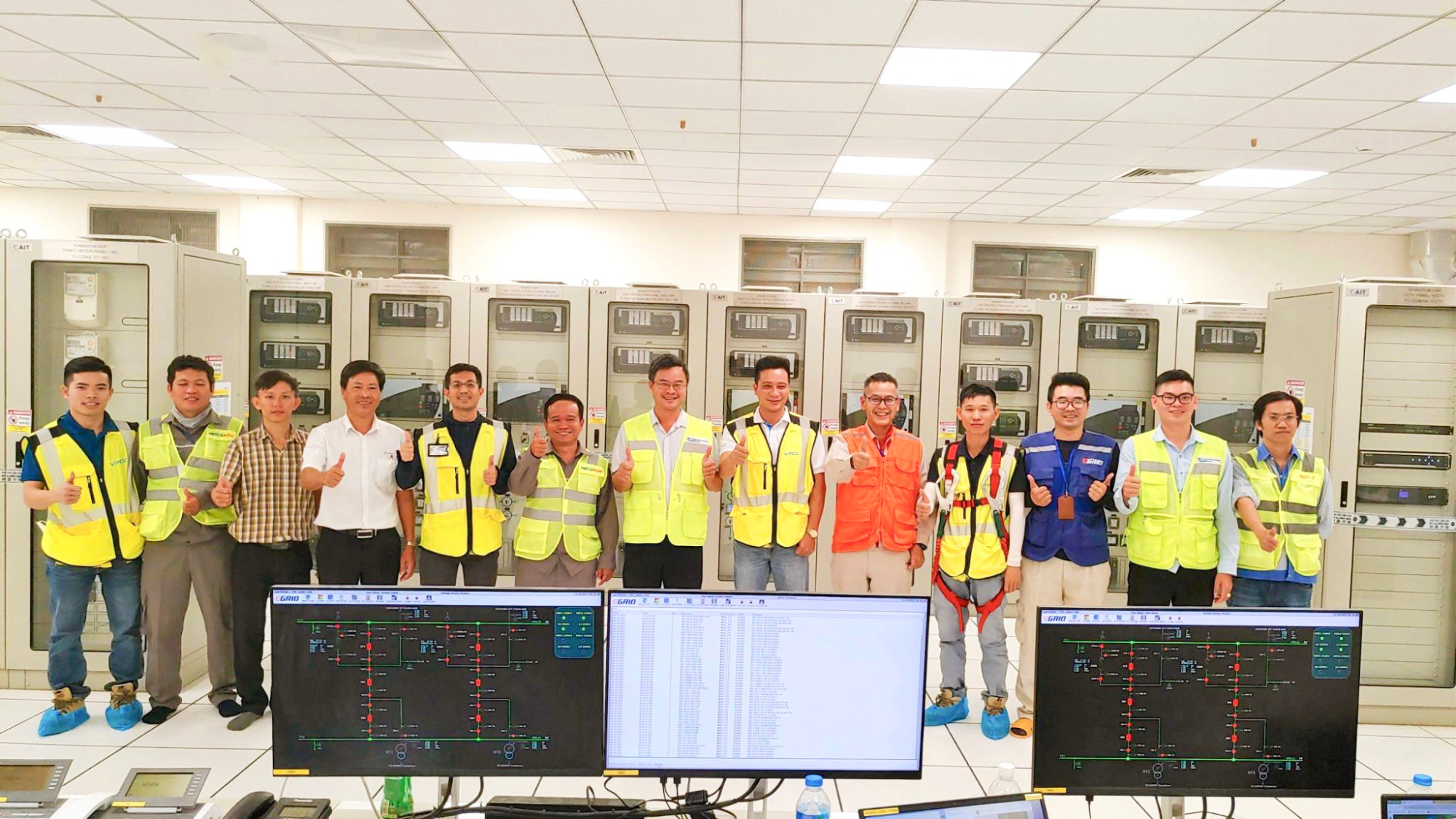 Trưởng ca PECC2POM chụp hình lưu niệm với các bên sau khi sau khi đóng điện thành công.