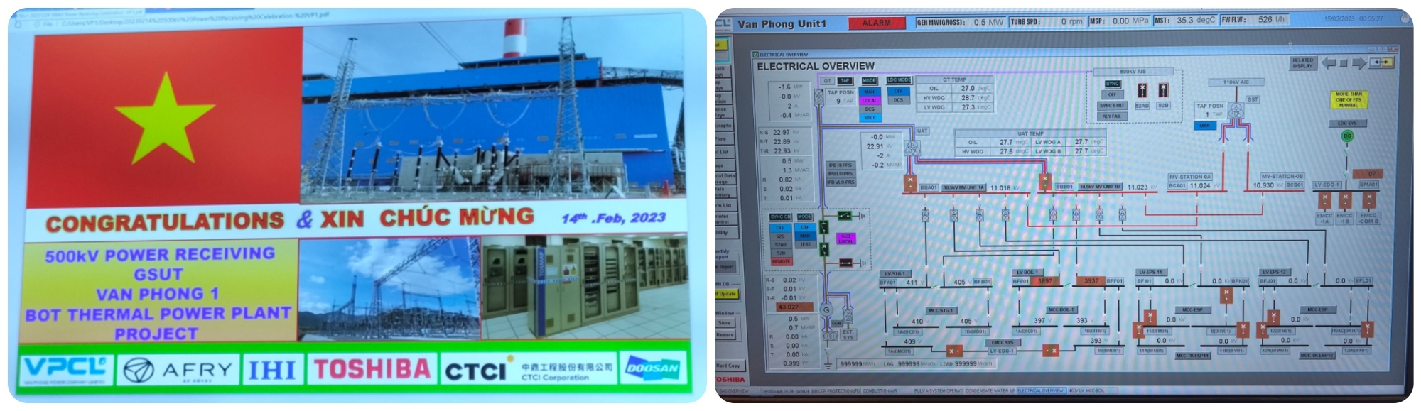 Dấu mốc ghi nhận sự kiện MBA T1 đóng điện thành công.