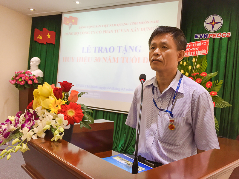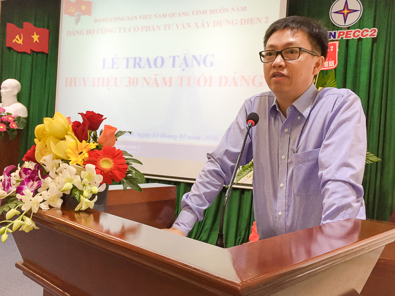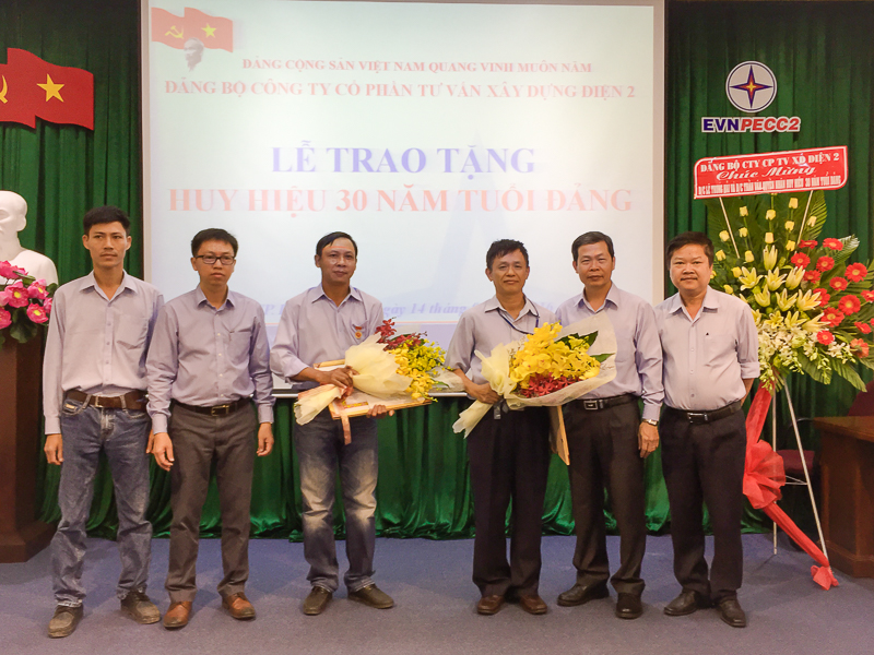 Căn cứ quyết định của Ban Thường vụ Trung ương Đảng Cộng sản Việt Nam, sáng ngày 14/01/2016, Đảng bộ Công ty Cổ phần Tư vấn Xây dựng Điện 2 (TV2) đã chức Lễ trao huy hiệu 30 năm tuổi Đảng cho hai đảng viên của Đảng bộ là đồng chí Lê Trung Hải chi bộ 6 và đồng chí Trần Văn Quyền chi bộ 10. Đến dự buổi lễ có Thạc sỹ Phạm Minh Giáp nguyên Ủy viên Ban Thường vụ, Giám đốc Trung tâm bồi dưỡng chính trị Đảng ủy Khối, nguyên Chuyên viên cao cấp Ban Kinh tế Trung ương tại TP. Hồ Chí Minh, báo cáo viên cấp Trung ương; đồng chí Nguyễn Chơn Hùng bí thư Đảng ủy Công ty và gần 100 cán bộ, đảng viên TV2.
