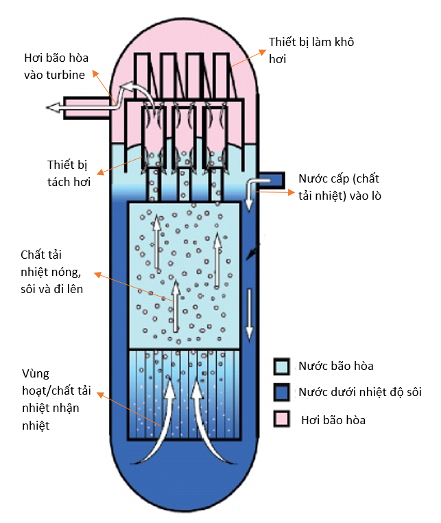 BWRX – 300 là sản phẩm của GEH (Liên minh hạt nhân do GE và Hitachi thành lập) có công suất điện là 300MWe, hoạt động dựa trên nguyên lý ĐLTN. Thiết kế của BWRX – 300 dựa trên thiết kế của ESBWR (Economic Simplified Boiling Water Reactor) [9]. Các ưu điểm chính của BWRX – 300 là nhỏ gọn, ít tốn vật liệu hơn so với các SMR dùng nước áp lực, vì áp suất trong lò nước sôi bao giờ cũng nhỏ hơn nhiều so với nước áp lực và hơi sản xuất trực tiếp từ lò đi thẳng vào turbine. Tuy nhiên các hệ thống an toàn chống rò rỉ hơi phóng xạ và yêu cầu của turbine hơi cũng như bộ phận làm mát turbine hơi cần khắt khe hơn lò nước áp lực có 2 vòng tuần hoàn. Vì những lí do an toàn mà hiện tại BWRX đang đi sau các lò SMR dùng nước áp lực trong cuộc đua lấy chứng chỉ của Ủy ban điều tiết hạt nhân Mỹ.