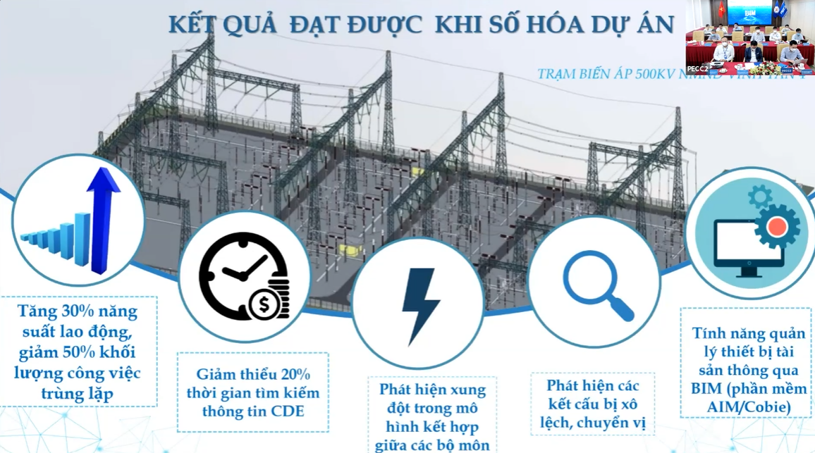 Cũng trong diễn đàn hội thảo, PECC2 đã có buổi trao đổi cởi mở và thẳng thắn, đồng thời giải đáp các ý kiến và câu hỏi liên quan đến quá trình tạo lập, giai đoạn thiết kế, các bước thi công vận hành, bảo trì, thời gian chuyển giao và chi phí của hệ thống BIM khi áp dụng với các nhà máy nhiệt điện và thuỷ điện.