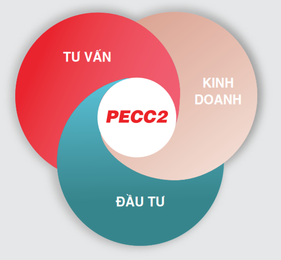 Trăn trở để tìm ra hướng đi chiến lược cho riêng mình, cách đây 7 năm Ban Lãnh đạo PECC2 đã xây dựng ý tưởng chiến lược mang “sắc thái PECC2”, dựa trên 03 mảng hoạt động chính: Tư vấn + Kinh doanh + Đầu tư, hình thành ba vòng tròn chiến lược PECC2.