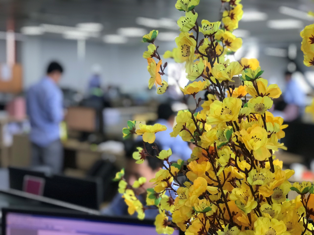 Hưởng ứng lời kêu gọi của Ban Chỉ đạo phòng chống Covid, nhiều thành viên của TNĐ đã chọn việc đón tết ở Sài Gòn, để sẵn sàng cho một năm làm việc mới an toàn. Theo “truyền thống” trong buổi làm việc đầu tiên của năm mới, các thành viên TNĐ lại cùng quây quần giữa sảnh của trung tâm, tạo thành một vòng tròn đoàn kết, cùng trao nhau những lời chúc thành công, những cái bắt tay nồng ấm và những “phong bao” lì xì may mắn. TNĐ cũng chào đón những vị khách đầu tiên của năm: Ban Tổng giám đốc (TGĐ), Lãnh đạo các đơn vị và phòng ban khác trong Công ty. Cùng những lời động viên, khích lệ tinh thần lao động của Ban TGĐ, phút chốc TNĐ đã trở thành ngôi nhà lớn tràn ngập không khí Tết, cùng chúc nhau năm mới, cùng khai xuân bằng một bữa tiệc nhỏ ấm cúng.